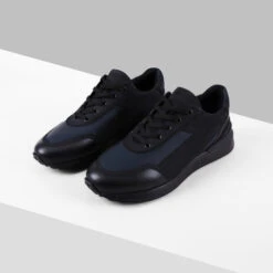 Nouveauté de la saison printemps-été, ces baskets bleu marine présentent une silhouette moderne qui allie technicité et urbanité. L’empeigne est un subtil jeu de matières : le veau velours à l’aspect velouté contraste avec les empiècements texturés en veau tissé et en tissu technique. Agrémenté d’une fermeture sans lacet et d’une semelle épaisse en caoutchouc, ce modèle rappelle une paire d’escarpins. ZILLI Le lettrage apporte la touche finale. A porter avec une chemise en jean, un t-shirt et un pantalon décontracté pour une balade en ville.